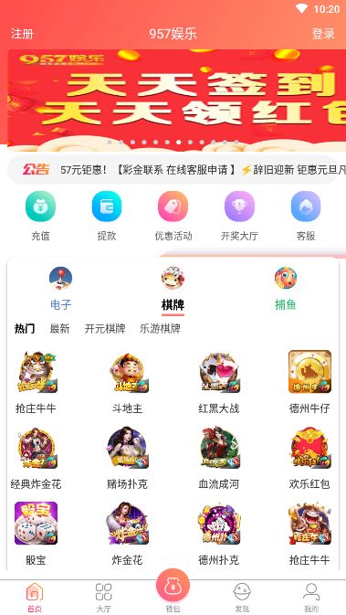 957cc娱乐,一款最近非常流行的棋牌游戏,957cc娱乐游戏中百分百都是真人玩家在线对战,多种不同类型的棋牌玩法以及街机游戏等你来一一探索,同场竞技没有任何的限制,每天都可以快速匹配实力相符的玩家,没有任何机器人,放心打牌。