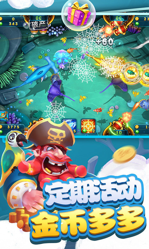 不定时出现鱼群和鱼王,给你带来更多赢得丰富奖励的机会,捕鱼更加刺激!